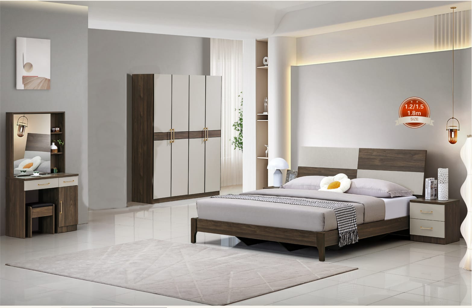 CHAMBRE COMPLET EN MÉLAMINE 1*ARMOIRE 4 PORTES 1*LIT 1,5*2,0 M 2*TABLES DE NUIT, T 1*COIFFEUSE