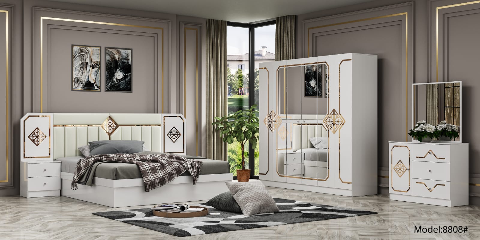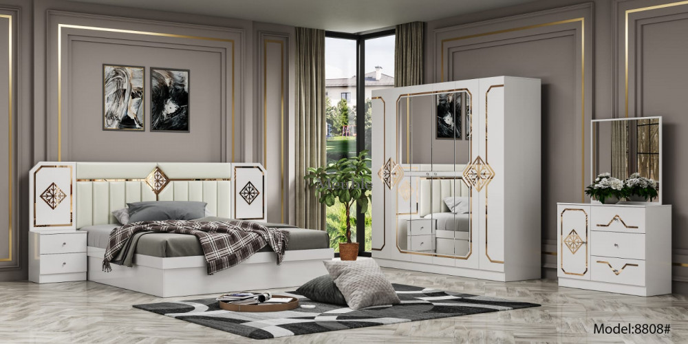 CHAMBRE ENSEMBLE EN MÉLAMINE 1*ARMOIRE 6 TIROIRS 1*LIT 1,8 M 2*TABLES DE NUIT, 1*COIFFEUSE