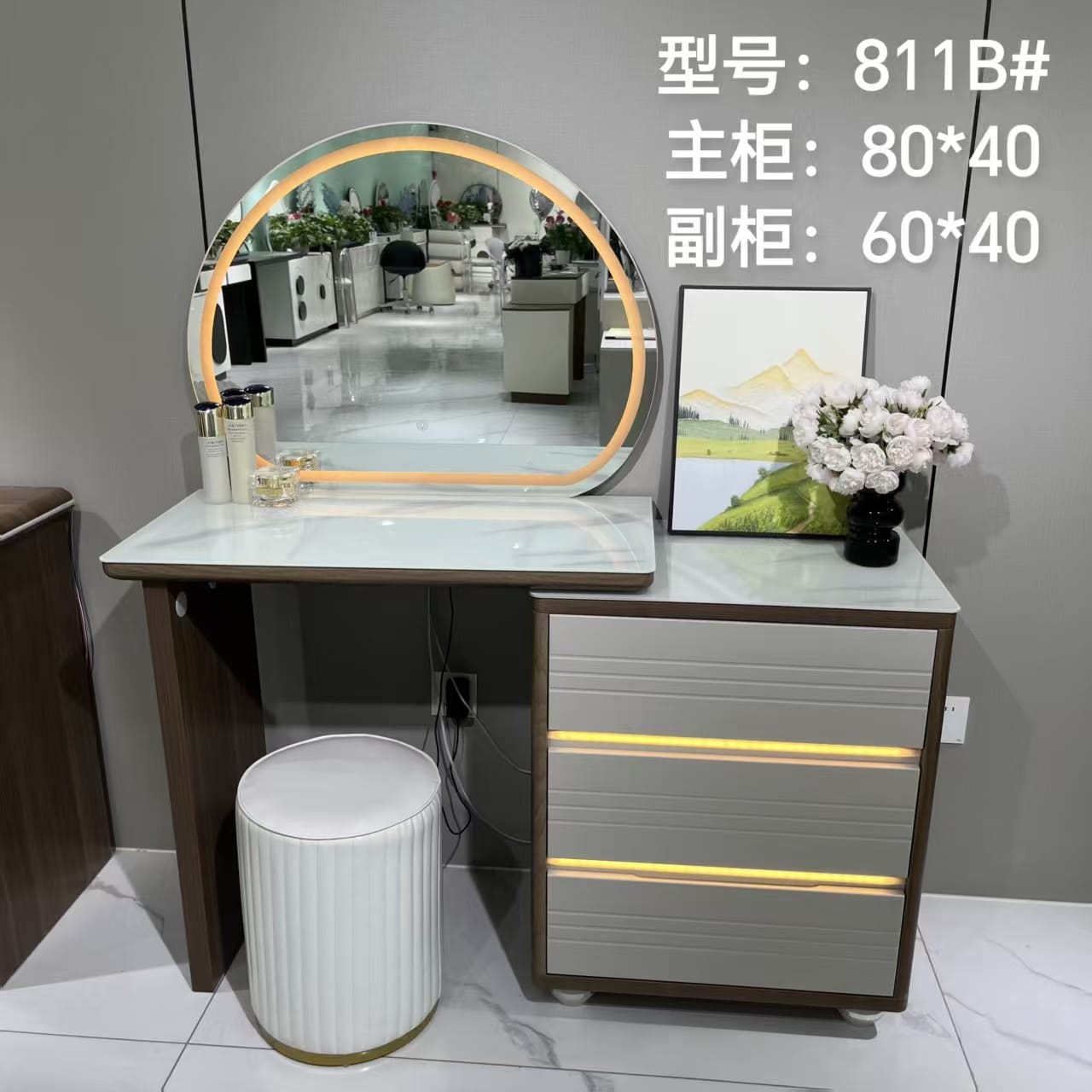 COIFFEUSE ENSEMBLE AVEC ÉCLAIRAGE : 80+60CM