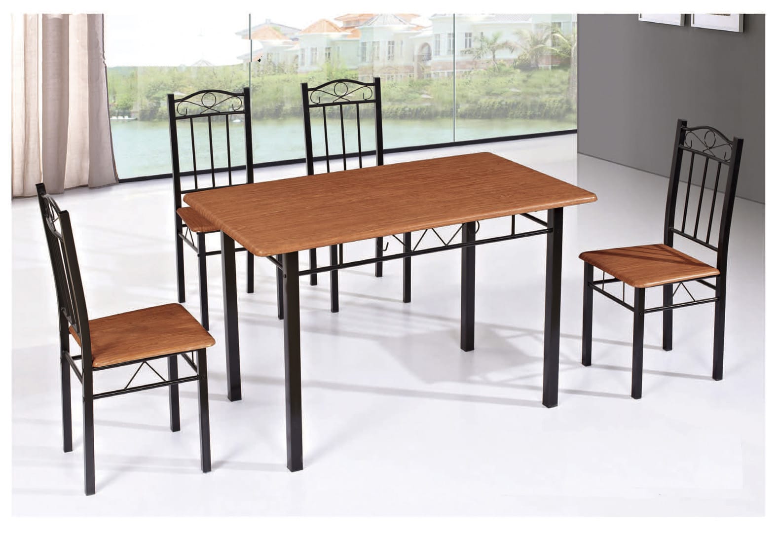 COMPLET SALLE À MANGER MDF 1+4 TAILLE : 120*70CM COULEUR : MARRON / GRIS